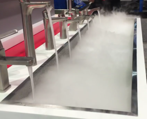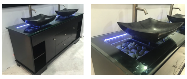 This sink portrays a new trend that we have seen for 2016. The idea of having an accent light in your sink is quite popular while adding a modern flare. The above pictures portray the overall look and then another picture that shows a close-up.