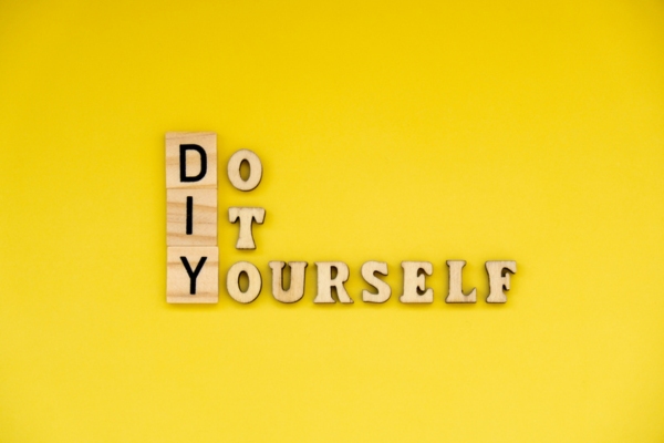 Do It Yourself spelled using wooden letters depicting eliminating sewer gas smell in house