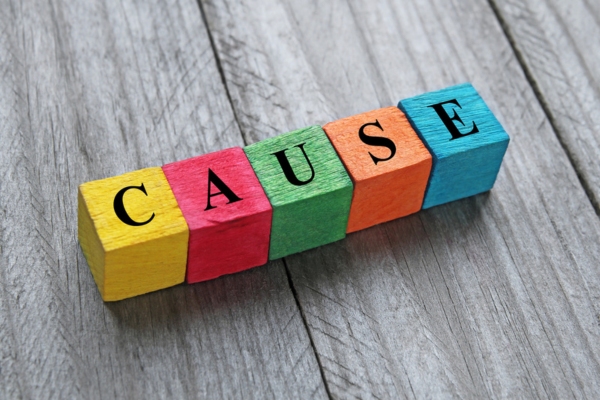 cause word spelled using colored wooden letter cubes depicting causes of sump pump failure